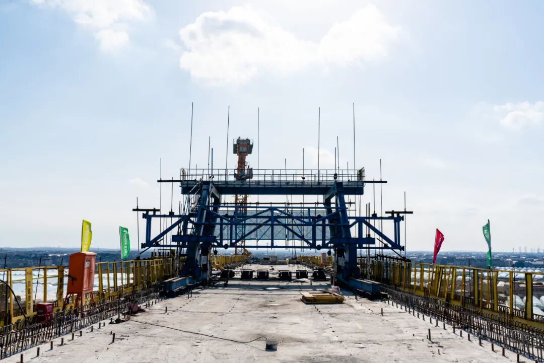 近期,随着最后一方混凝土浇筑完成,南汇支线9标跨S32申嘉湖高速163米连续梁顺利合龙,标志着项目关键控制性节点顺利完成,为后续铺轨施工奠定了坚实基础。