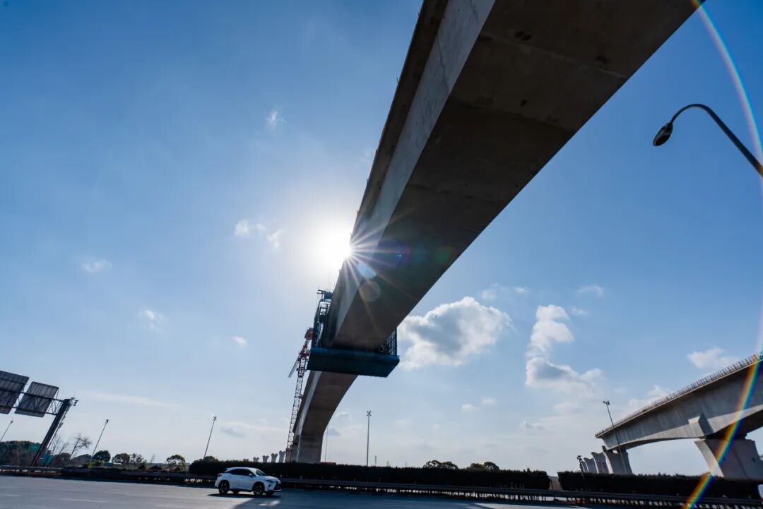 南汇支线9标跨S32申嘉湖高速163米连续梁顺利合龙